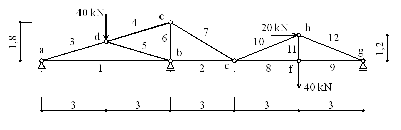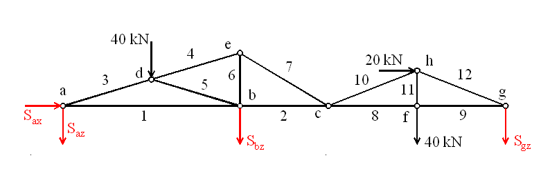 Řešte reakce a vnitřní síly na zadané konstrukci