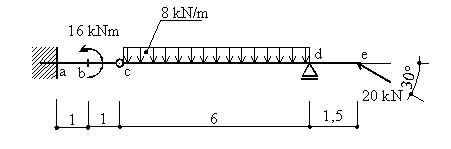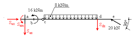 Řešte reakce a vnitřní síly na zadané konstrukci
