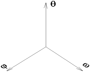 Obr.: Souřadná soustava trojrozměrného fázového prostoru vybraného dynamického systému.
