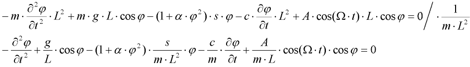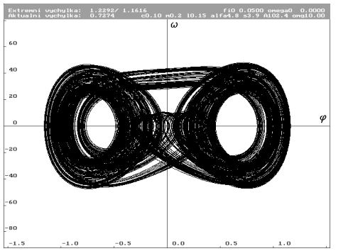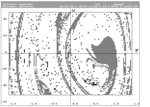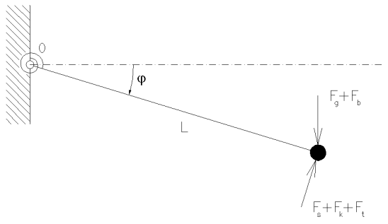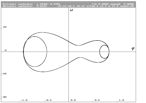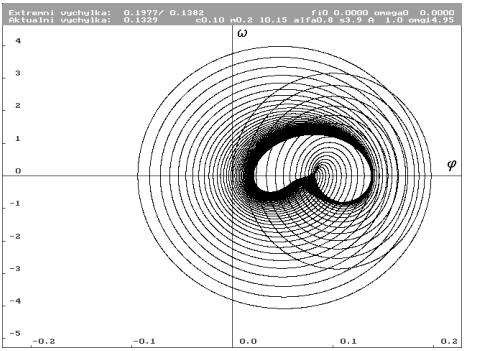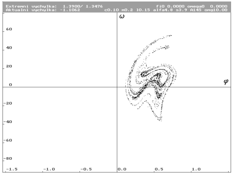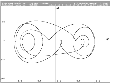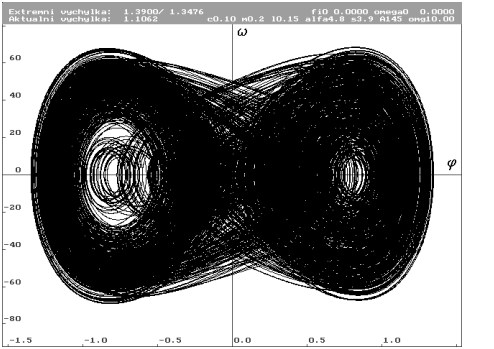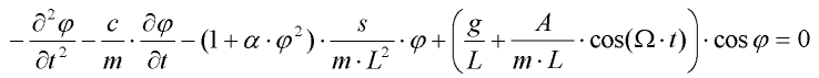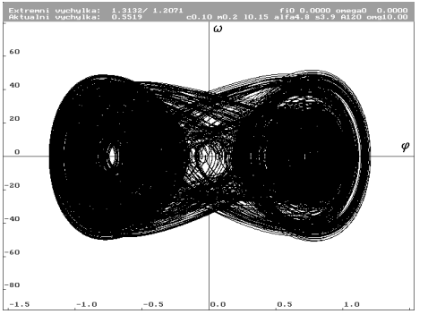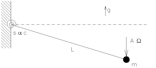 ![]() | Znázornění parametrů systému. Jednotlivými parametry jsou: hmotnost hmotného bodu m, délka závěsu L, konstanta útlumu c, gravitační zrychlení g, nelineární součinitel , lineární tuhost s, amplituda budící síly A, frekvence budící síly . |