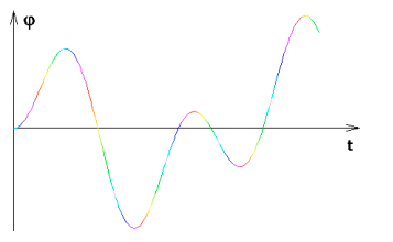 ![]() | První z trojice po sobě jdoucích obrázků, vysvětlující vliv použitého zobrazení na porozumění chování systému. Je znázorněním závislosti stavové proměnné na čase t. |