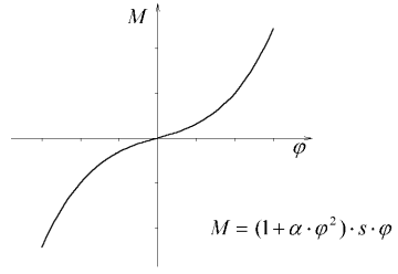 Protože chceme získat představu o nelineárním dynamickém chování, vytvoříme model nelineární. Připustíme-li velké deformace modelu, tak abychom nemohli zanedbat jejich vliv, vznikne nelineární člen zohledňující geometrický stav. Tento člen nazveme nelinearitou geometrickou. Druhý nelineární člen se bude nacházet ve funkci napjatosti pružiny, jinak řečeno závislosti momentu v pružném vetknutí na pootočení prutu. Tento člen, vyjadřující fyzikální vlastnost pružiny, nazveme nelinearitou fyzikální.