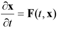 kde t je čas a F je vektorová funkce, tj. po rozepsání