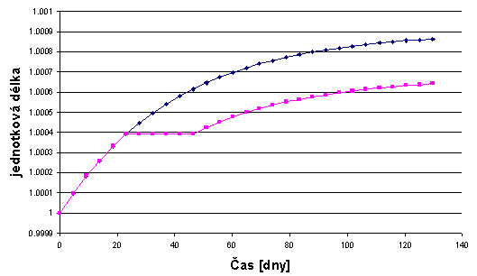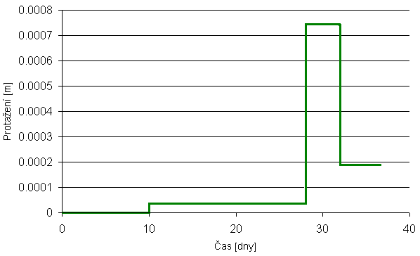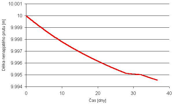 Obr. 12: Změna délky prutu vlivem reologických jevů