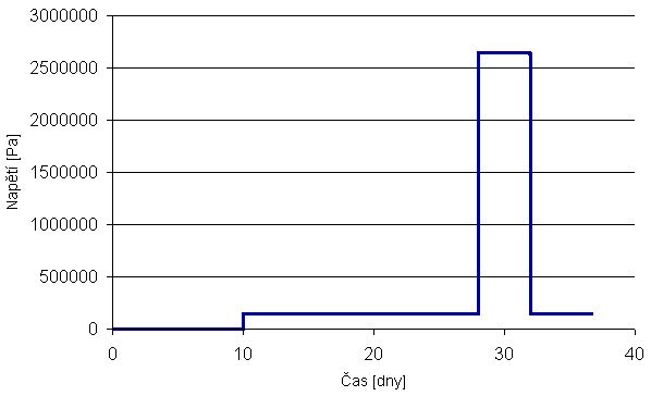Zatěžovací plán byl použit takový, že se do bednění vybetonuje prut, po 10 dnech se odbední a po 28 dnech se na 4 dny zatíží silou 25 kN.