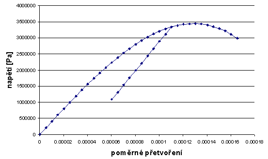 kde parametr R je zvolen tak, aby konečné dovarování při napětí 3 MPa bylo 0.9mm/m. Tedy R = 3.10-10 Pa-1.