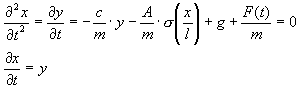Protože soustavu diferenciálních rovnic budeme řešit numericky, potřebujeme upravit tuto diferenciální rovnici druhého řádu na soustavu dif. rovnic prvního řádu. Výsledné diferenciální rovnice kmitání tedy budou: