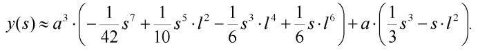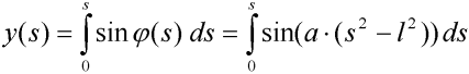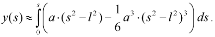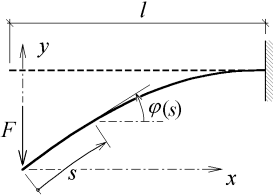 kde y(l) je svislá souřadnice vetknutí vzhledem ke koncovému bodu, viz obr. 1. Svislou souřadnici deformovaného tvaru obecného bodu y(s) definujme takto: