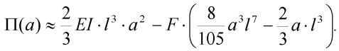 kde a je hledaný neznámý parametr. Pro jeho nalezení užijeme právě Ritzovu metodu. Nejprve formulujme výraz pro potenciální energii deformace vnitřních sil: