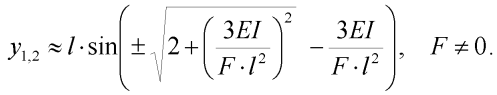 Přibližným řešením svislé deformace koncového bodu y jednostupňového modelu [3] je při splnění počáteční tuhosti modelu vzhledem k lineárnímu řešení rovnice: