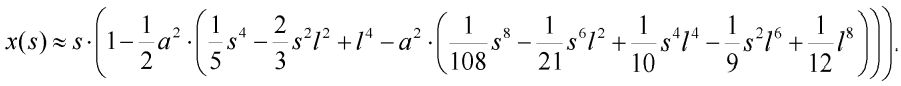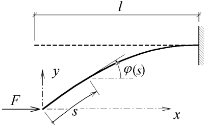 kde x(l) je vodorovná souřadnice vetknutí vzhledem ke koncovému bodu, viz obr. 1. Vodorovnou souřadnici x obecného bodu deformovaného tvaru poloviny prutu definujme takto: