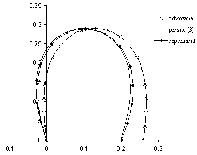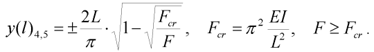 Odchylka hodnoty vzepětí mezi přesným řešením a odvozeným řešením je menší než 2% až do velikosti vzpěrné síly F=4 N. Hůře vyznívá srovnání deformovaných tvarů pro sílu F=3.5 N, viz obr. 3. Určit míru chyby řešení se ukazuje u pokritického vzpěru jako komplikovaný problém, který je určován náročností úlohy (oblast ztráty a následné obnovení stability prutu).