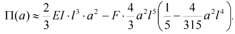 kde a je hledaný neznámý parametr. Pro jeho nalezení užijeme právě Ritzovu metodu. Nejprve formulujme výraz pro potenciální energii deformace vnitřních sil: