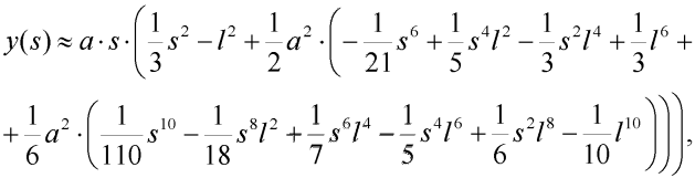 Pro úplnost uveďme přibližný vztah pro souřadnici y obecného bodu deformovaného tvaru poloviny prutu: