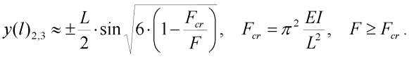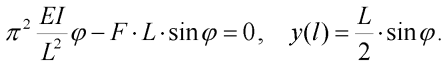 Vzepětí jednostupňového modelu prutu [2] je při splnění počáteční tuhosti modelu vzhledem k lineárnímu řešení dáno implicitní rovnicí:
