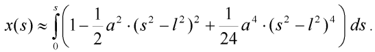Provedeme integraci a dostáváme přibližný výraz pro hledanou souřadnici obecného bodu uvažované poloviny prutu: