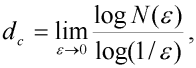 kde N() je minimální počet n-dimenzionálních krychlí velikosti , nutných k pokrytí měřeného objektu nacházejícího se v n-dimenzionálním prostoru.