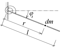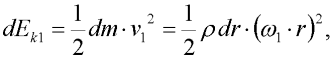 Diferenciální element o hmotnosti dm vytnutý na prvním dílci (viz obr. 3) má kinetickou energii