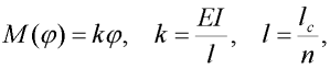 Mějme konzolový nosník konstantního průřezu o hmotnosti mc, délky lc a ohybové tuhosti EI. Nahraďme jej libovolným počtem stejně dlouhých tuhých dílců vzájemně spojených klouby s lineárními rotačními pružinami (viz obr. 1). Tento model lze dle rozdělení finitních metod mechaniky [1] označit jako užití metody tuhých fyzických konečných prvků, zkráceně MTFKP. Nechť pružiny působí na tuhé dílce momentem M, pro který platí: