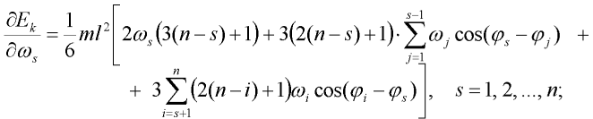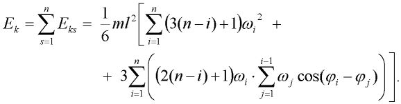 je pootočení s-tého tuhého dílce. Kinetická energie prvního dílce je potom: