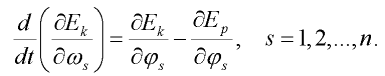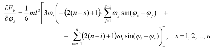 čímž dostáváme soustavu 2n diferenciálních rovnic prvního řádu. Lze snadno dokázat, že v našem případě lze výraz (13) užitím výrazů (2), (10) a (12) zjednodušit na: