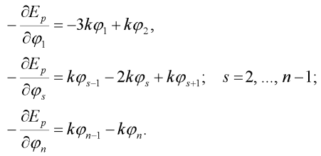 Pohybové rovnice pro popsaný MTFKP model dostaneme dle Lagrangeovy metody [2] z předpisu: