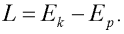 Pro aplikaci Lagrangeova principu je třeba sestavit skalární funkci L (tzv. Lagrangián), kterou obdržíme jako rozdíl kinetické energie Ek a potenciální energie Ep vyšetřovaného systému. Platí tedy výraz: