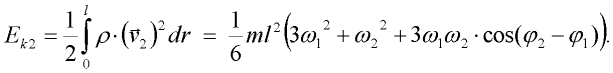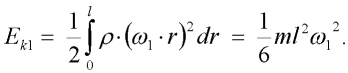 V našem případě je poměrně obtížné sestavit výraz pro kinetickou energii Ek. Proto začneme s prvním elementem. Formulujme nejprve výraz pro dílčí kinetickou energii Ek1 prvního dílce.