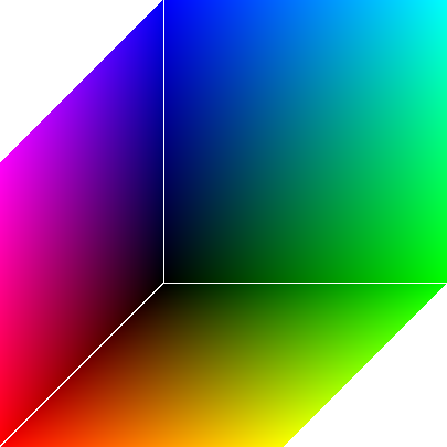 Obr. 2: Znázornění RGB prostoru (zobrazeny barvy na podstavných rovinách)