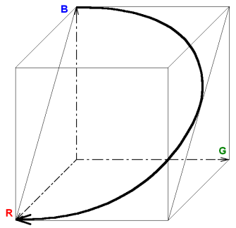 Zapíšeme-li hledanou polohu bodu v RGB prostoru pomocí jednoho parametru z, který vyjadřuje stupnicí zobrazovanou funkční hodnotu, dostáváme barvu c (z):