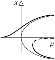 Z obr. 2 je dále zřejmé, že i pro složitější systémy vykazující vidličkovou bifurkaci lze oprávněně předpokládat, že platí: