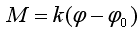 kde M je moment, jímž pružina působí na tuhý dílec, k je tuhost pružiny a