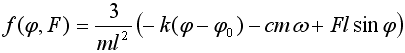 Pro nalezení bifurkačního bodu můžeme užít postupu popsaného v úvodu tohoto příspěvku. Aplikací vztahu (1) na pohybové rovnice (27) dostáváme:
