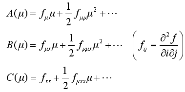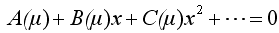 V okolí bifurkačního bodu rozvineme definiční funkci systému do Taylorovy řady: