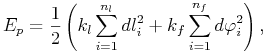 Oba typy pružin uvažujme jako lineární. Potenciální energii Ep, která se akumuluje v těchto pružinách lze zapsat ve tvaru: