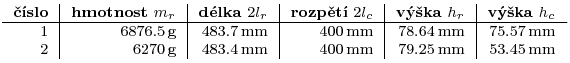 Tabulka 1: Parametry vzorků z cementového kompozitu