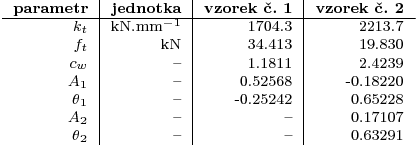 Tabulka 2: Aproximované statické parametry modelu pro oba vzorky