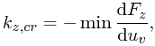 kde Fz je kontaktní síla mezi hlavou lisu a vzorkem a uv je posunutí vzorku. Podmínku vzniku záhybu na zatěžovací dráze tak můžeme psát ve tvaru: