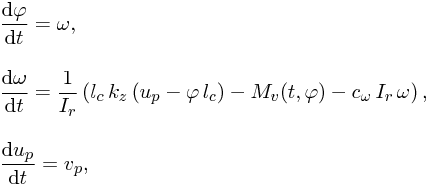 je koeficient lineárního viskózního útlumu, vp je rychlost posunu příčníku lisu a Ir je moment setrvačnosti tuhé desky nahrazující trámec, pro který paltí: