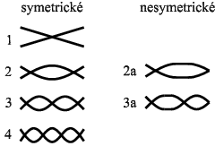 Symetrické tvary s lichým indexem mají proměnné vzájemné pootočení koncových průřezů deskového prutu okolo střednice, typicky nenulové. Sudé symetrické tvary se naopak vyznačují nulovým vzájemným pootočením koncových průřezů, viz obr. 6.