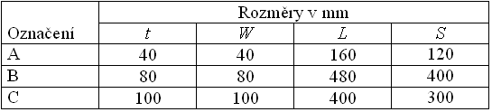 Při určování hodnot lomově mechanických parametrů kompozitů se silikátovou matricí se v závislosti na velikosti maximálního zrna kameniva ustálilo používání tří velikostí zkušebních těles. Jejich nominální rozměry uvádí tab. 1, přičemž označení rozměrů je v souladu s obr. 1. Hloubka zářezu an odpovídá u všech těles 1/3 výšky vzorku W.
