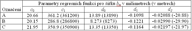 Tab. 3 Parametry regresních funkcí